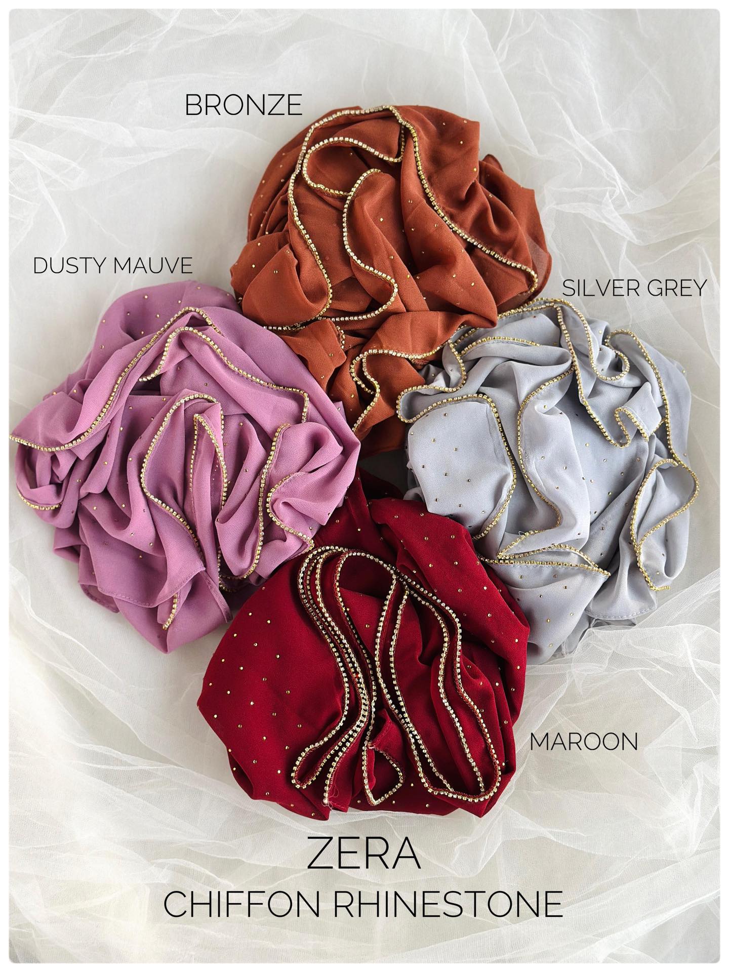 Zera Chiffon Rhinestone Hijab - Silver Grey